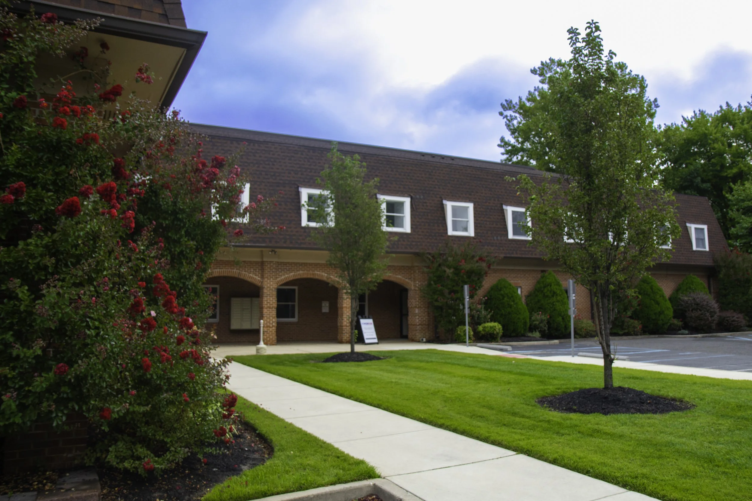 Drive through the shopping center, under the archway. Take a left when you see the sign that says “Heritage Office.” You will see a large brick building with white windows. That is our building.